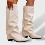 These knee-high boots combine the luxury of PU leather with a modern no-lace design, inspired by the iconic “shark style.” With their thick heel and structured silhouette, they add height, stability, and a cutting-edge touch to your fall and winter looks.
