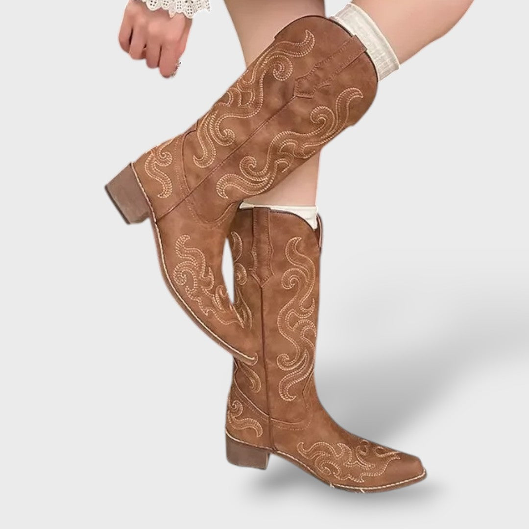 These high Texanas combine design and functionality. The V-shaped embroidery adds a touch of sophistication, while the chunky heel provides stability and comfort. Made from durable polyurethane, they are ideal for autumn and winter and make any look stand out.