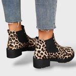 These leopard print Chelsea boots combine elegance and practicality for everyday wear. Their classic design with a round toe and sturdy sole offers lasting comfort, while their modern finish adds a sophisticated and bold flair to any outfit.