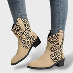 Women's Leopard Print Cowboy Boots with Pointed Toe in Suede