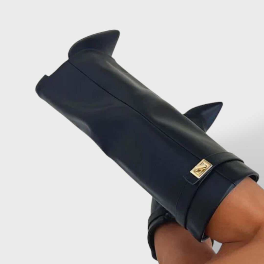 High Retro Boots with Belt – Chunky Heel and Shaping Effect