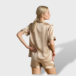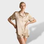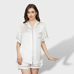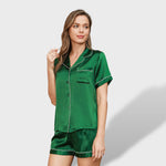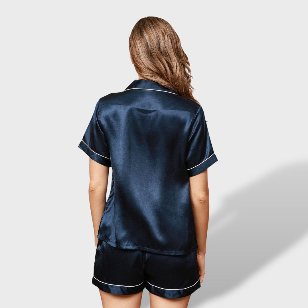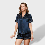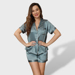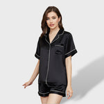 The Elena 2-piece set is designed to offer comfort and freshness, ideal for relaxing at home or sleeping. It includes a short-sleeve top with a lapel collar, decorative trims, and a front pocket, accompanied by relaxed-fit shorts. Available in a wide variety of colors, this pajama combines style and comfort, perfect for women of all ages and occasions.