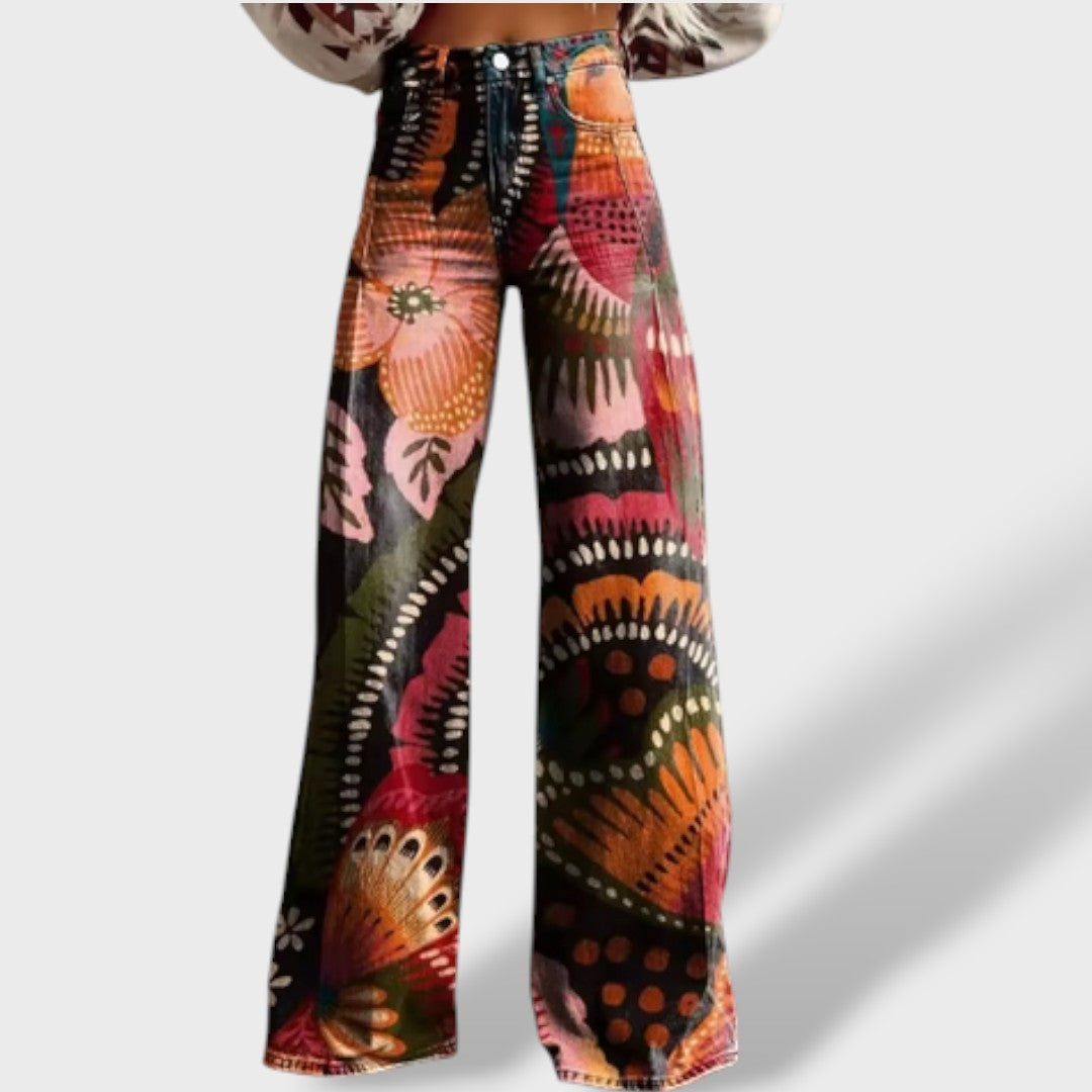 The Chiara pants offer the perfect combination of comfort and vintage design. With a relaxed fit, high waist, and wide legs, they enhance the silhouette without sacrificing comfort. Their lightweight and breathable fabrics are ideal for everyday wear, while the bohemian prints add a fun and personality-filled touch.