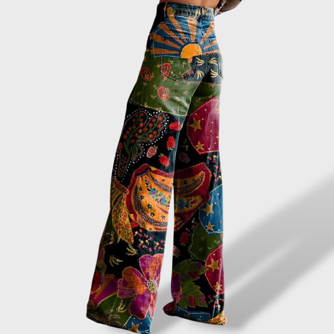 The Marina pants are the perfect blend of bohemian charm and vintage design. With a relaxed fit, high waist, and wide legs, they offer comfort and style with every step. Their lightweight and breathable fabrics care for your skin, while the bohemian prints add a fun and unique touch. Perfect for casual days, festivals, or carefree summer looks.