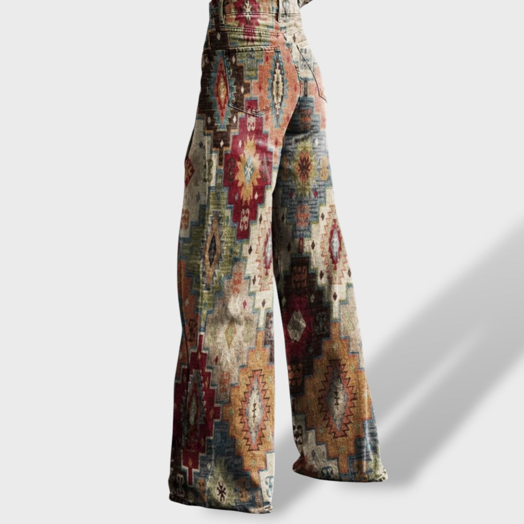 The Boho Vintage pants Valentina are the perfect combination of bohemian charm and retro design. With a relaxed fit, colorful prints, and breathable fabrics, they are ideal for those looking to combine style and comfort. Perfect for casual looks, festivals, or a carefree summer outfit.