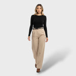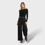A wide-leg tailored pant that brings relaxed elegance to any outfit. Its high waist with belt loops and soft pleats at the front create a flattering and comfortable shape, perfect for versatile everyday looks. A timeless piece that combines sophistication and ease with every wear.