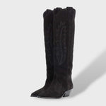 The high embroidered suede cowboy boots Celeste combine the charm of cowboy style with the modern comfort your feet deserve. Their handcrafted design, made from soft premium suede, features delicate embroidery that adds character and distinction to any look.