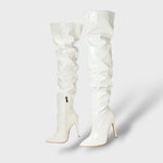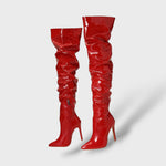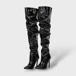 High Glossy Patent Leather Knee-High Boots with Stiletto Heel