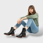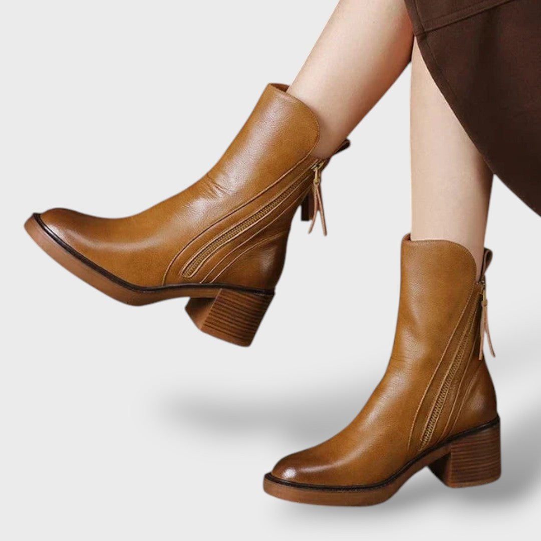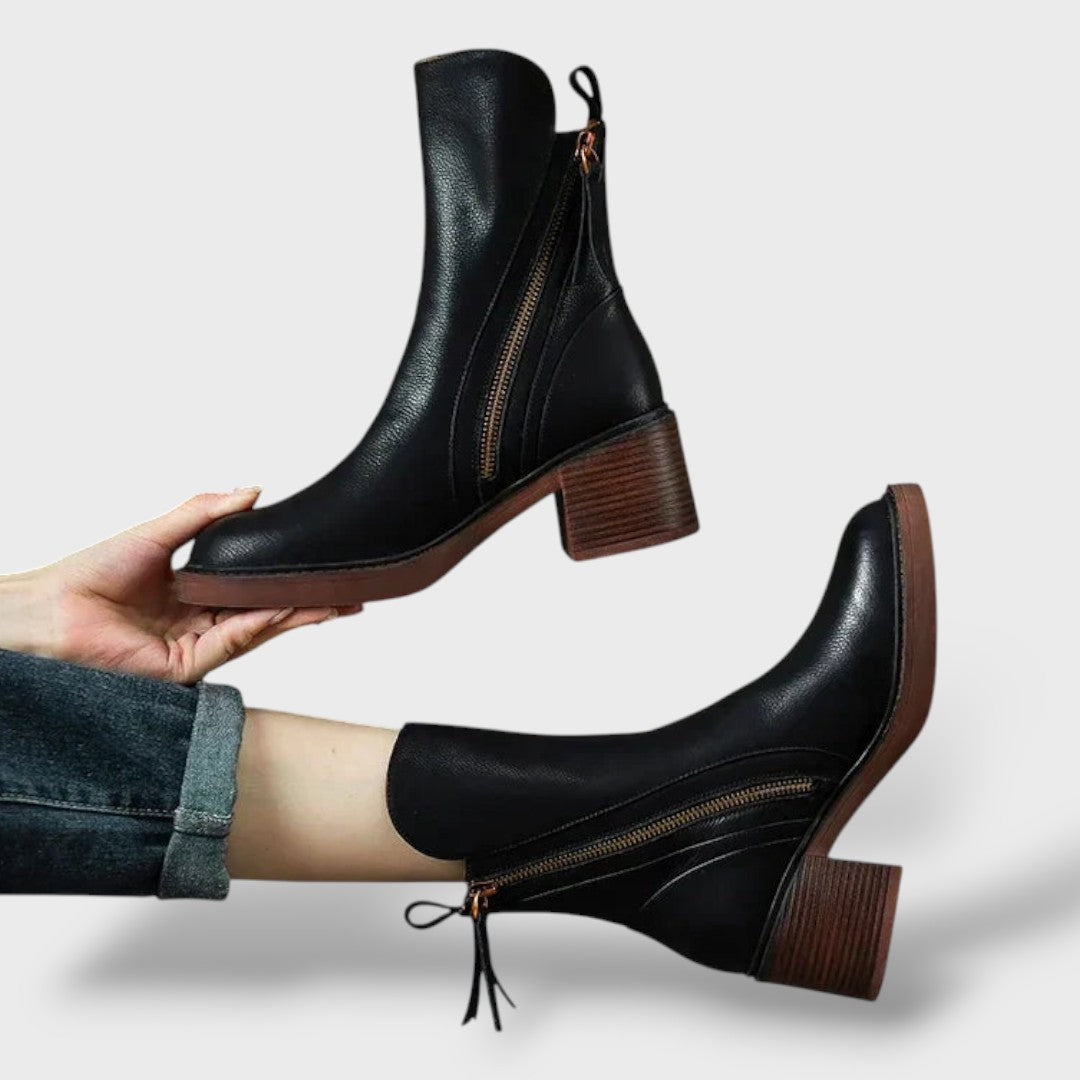 These ankle boots with a side zipper combine modern style and lasting comfort. Designed with a square heel that offers stability and a touch of height, they are perfect for accompanying you throughout the day. Their versatile design and subtle detail at the back make them the perfect complement for both casual looks and more elegant outfits.