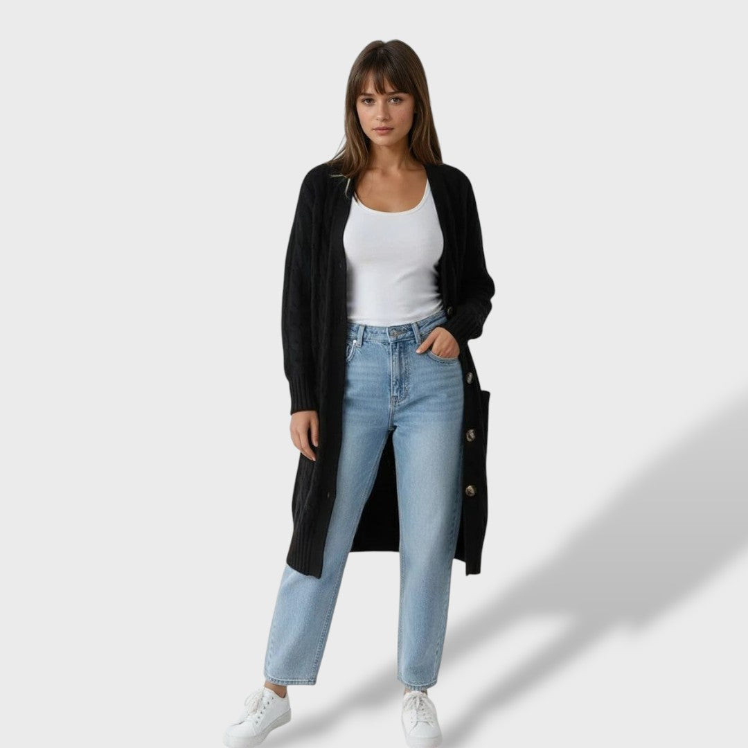 Clara Long Knit Cardigan for Women with Buttons and Pockets