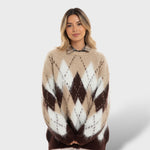 Stand out with this retro-designed women's sweater, perfect for casual and urban looks. Its warm and soft fabric ensures comfort all day long, while its checkered pattern and modern details add personality and style to your outfit.