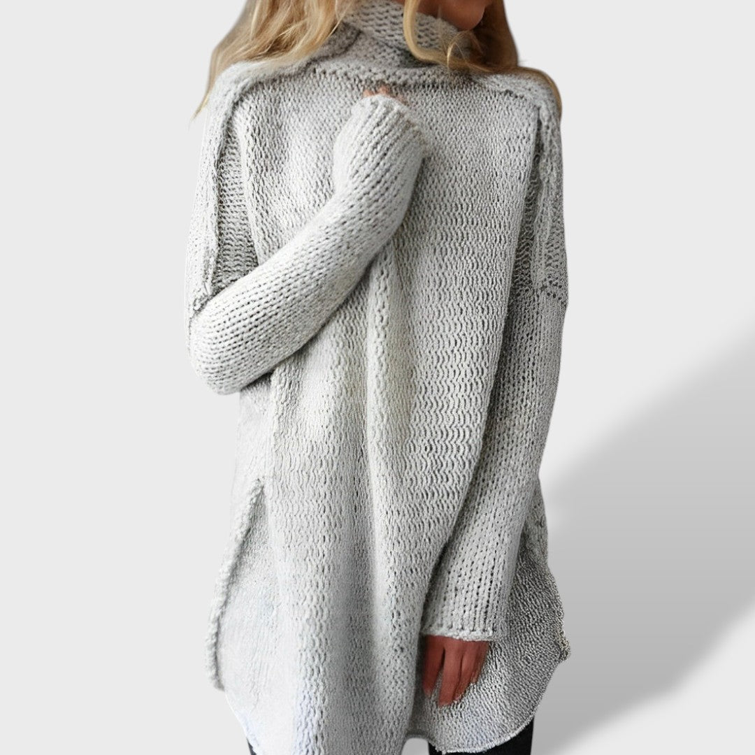 The Valeria long knit sweater is the perfect garment for cold days and cozy nights. Made with a blend of soft and breathable high-quality fabrics, this sweater provides unmatched warmth, comfort, and style. Its timeless design and relaxed fit make it ideal for any occasion, from a casual day to an elegant evening out.