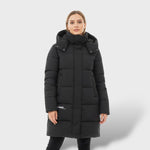 This quilted coat for women combines functionality and elegance in a garment designed to offer comfort and style. Made from refined fabric and cut long to the thigh, it features a hood with a high collar that provides additional warmth and a modern silhouette. Its relaxed and oversized design makes it the perfect choice for those looking for a chic and versatile look.